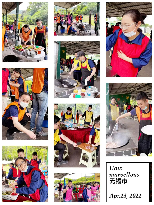 結束了充滿歡聲笑語的團建游戲,大家早已饑腸轆轆,紛紛開始迫不及待地生火做飯了。在春光明媚的露天,雖然晌午天氣有些許的炎熱,但是也擋不住大家的熱情。生火、洗菜、切菜、做飯,大家有條不紊的配合著。